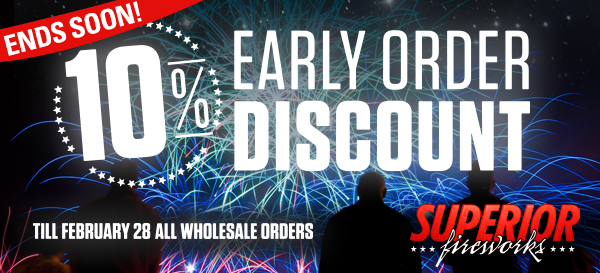 Your favorite wholesale fireworks sale is back for 2018! Now through February 28th, save an additional 10% off your order and get first pick of your favorite new items. This is the best time of the year to buy fireworks for the 4th of July!