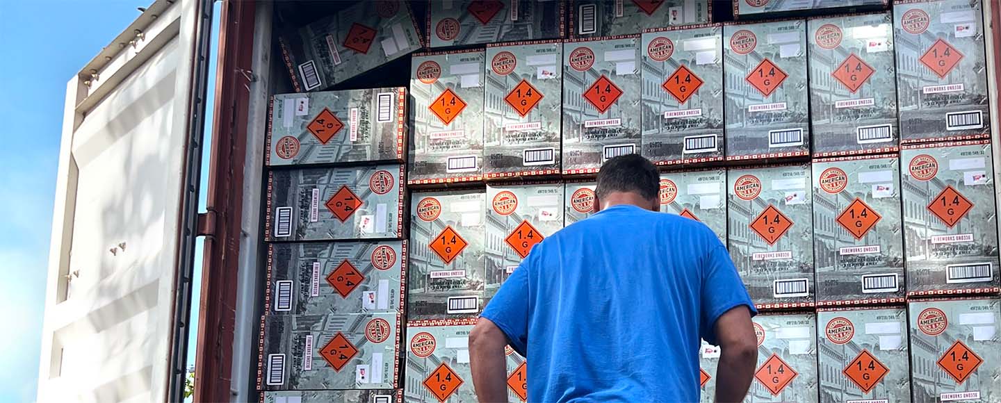 Our container program offers the lowest possible prices to retailers across the United States on direct import of our three brands: SFX Fireworks, SFX Show Line, and The Great American Fireworks Co.